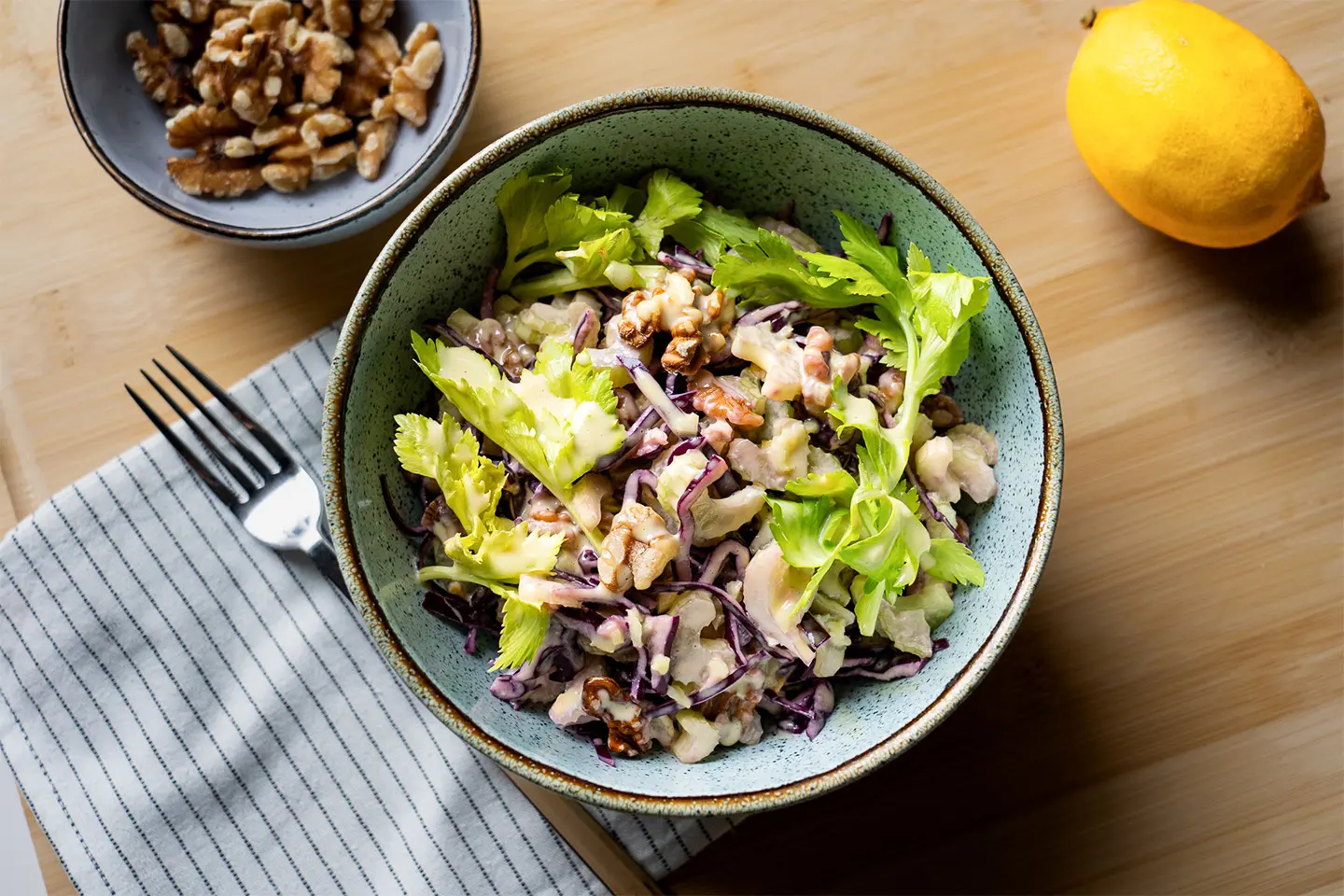 Szuper magában is, de köretként is, finoman fokhagymás és krémes, a zeller zamata pedig átjárja a salátát.