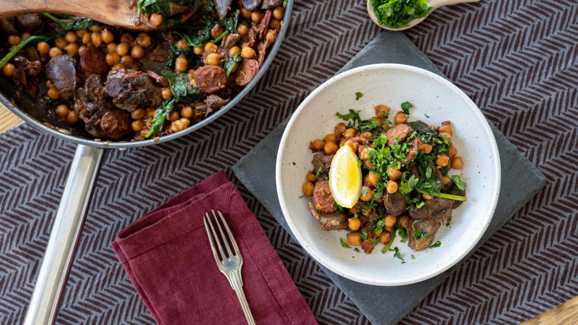 Chorizós csirkemáj csicseriborsóval