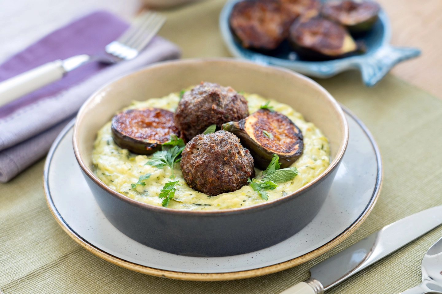 Cukkinifőzelék bárányfasírttal és fügével