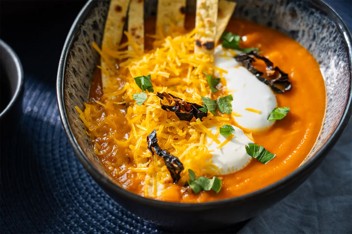 - Tálaljátok a forró levest tejföllel, reszelt cheddar sajttal és a tortilla csíkokkal.