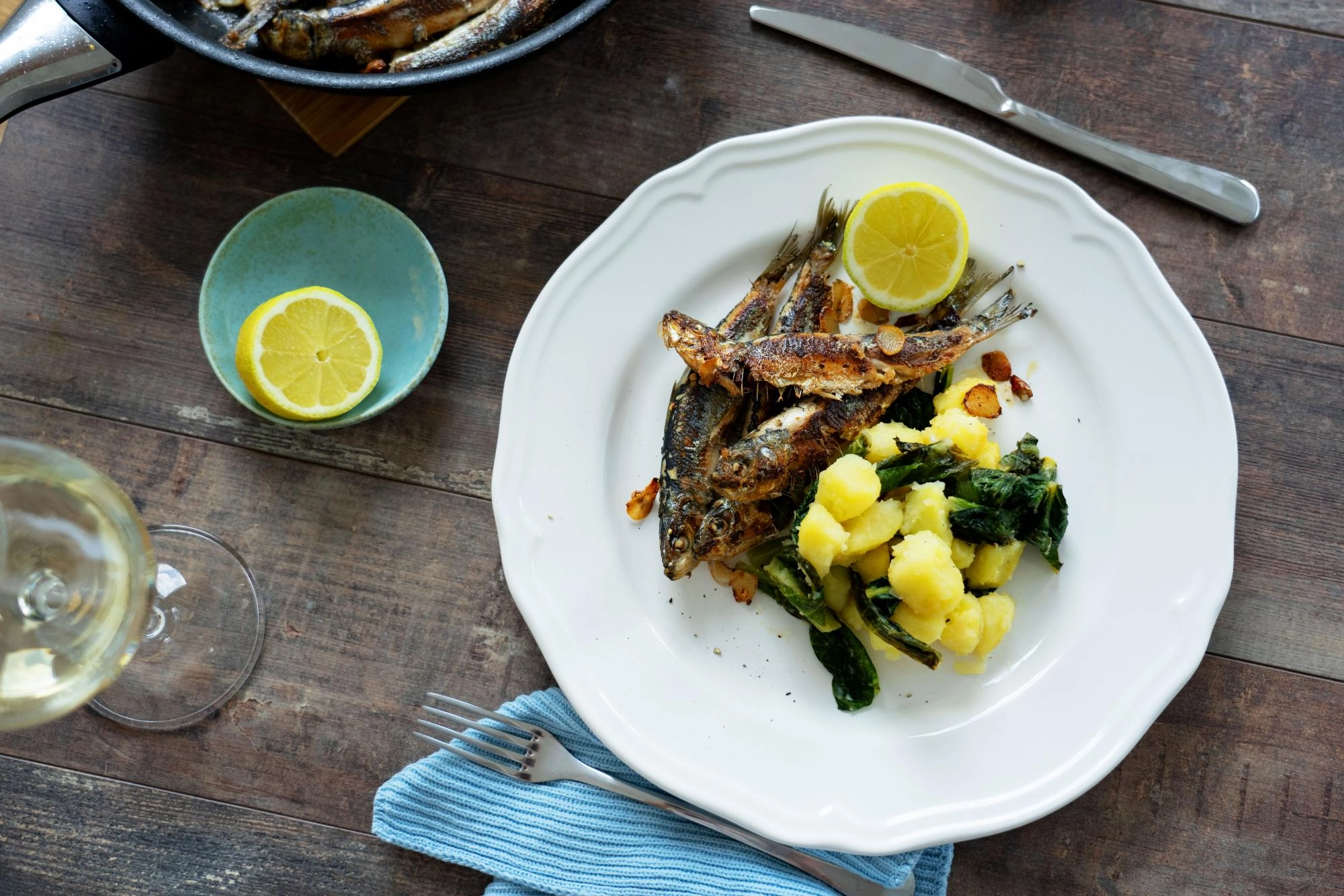Fokhagymás szardínia mángoldos krumplisalátával