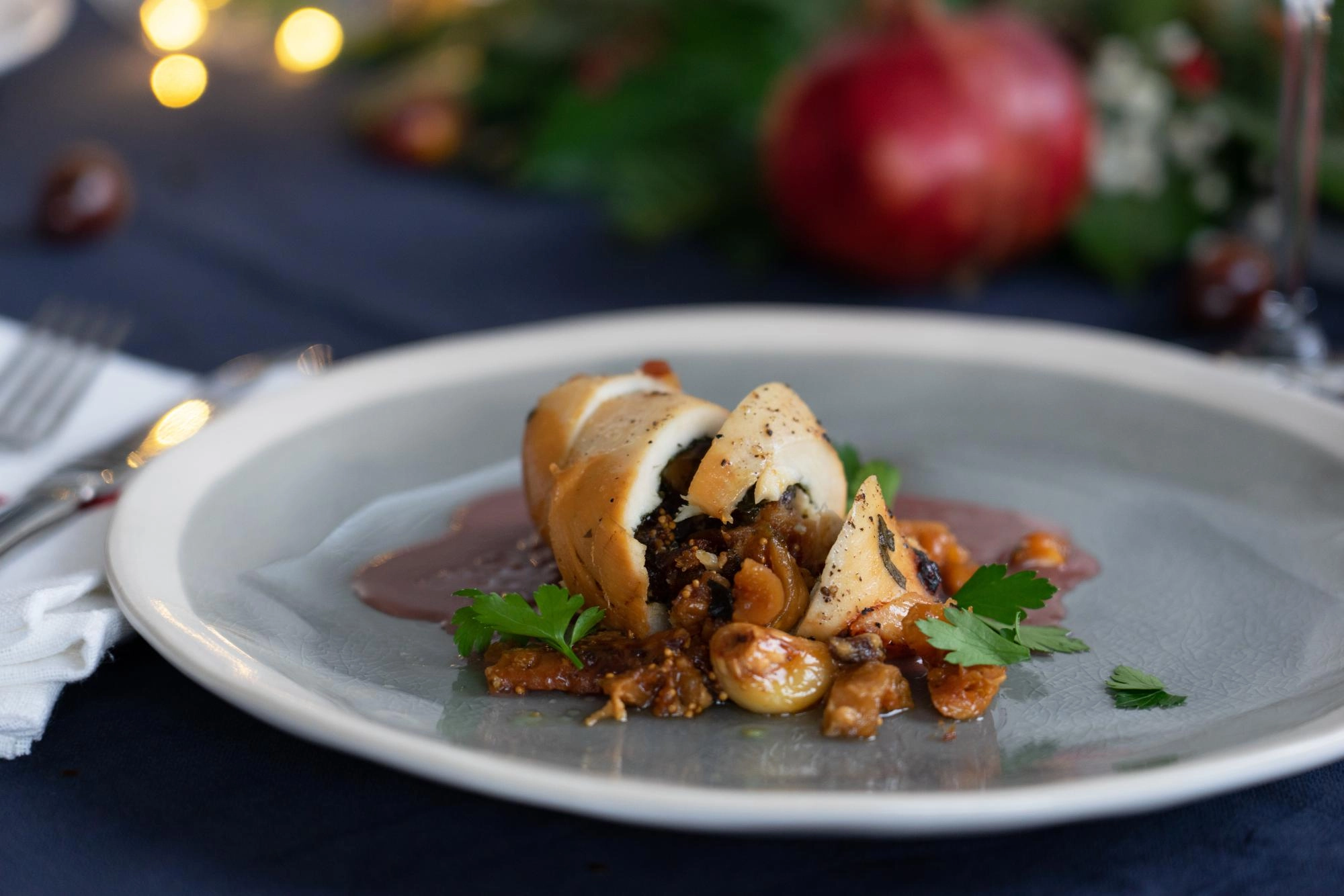 Fügével és manchego sajttal töltött csirkemell portói mártással