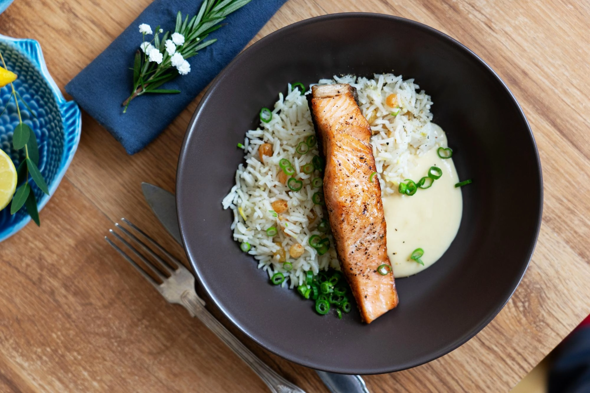 Lazac mazsolás rizzsel és citromszósszal