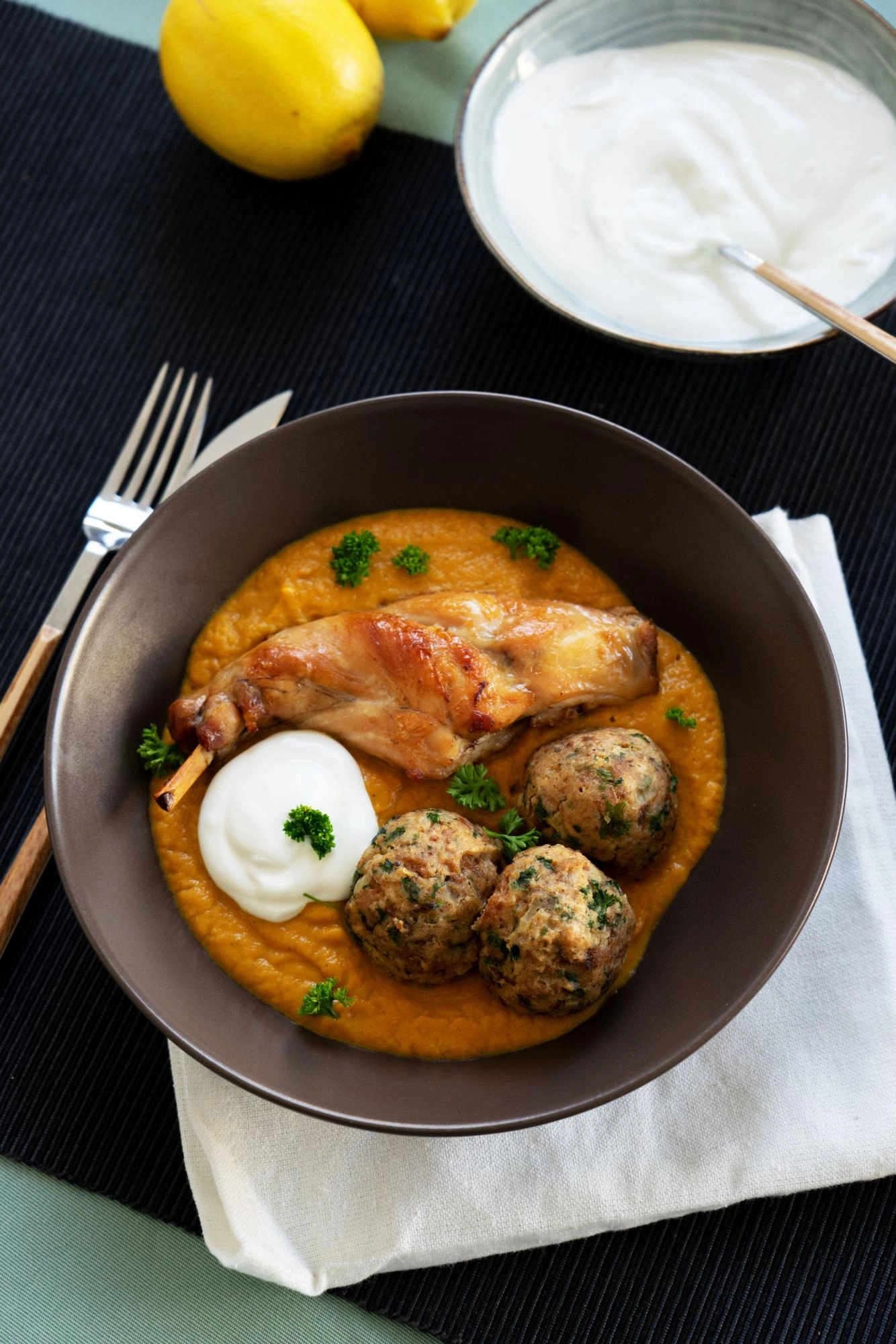 Nyúlvadas teljes kiőrlésű zsemlegombóccal