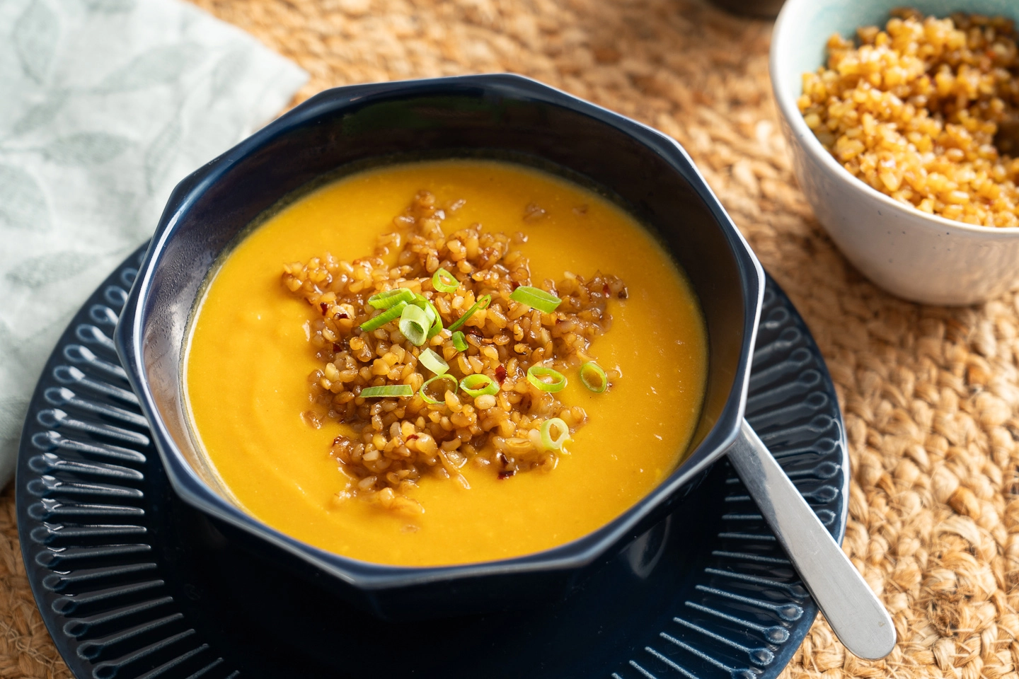 Ötfűszeres hokkaido tökkrémleves pirított bulgurral