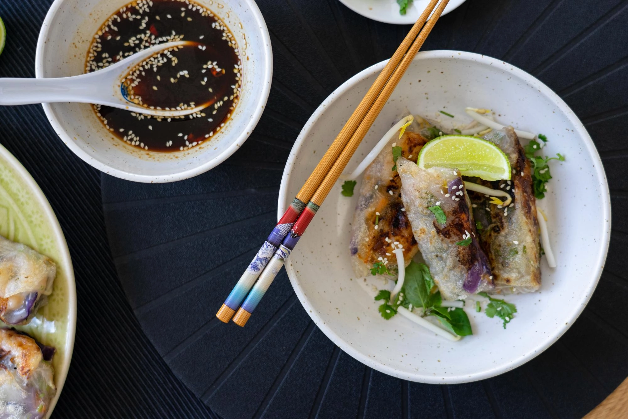 - Tálaljátok friss korianderrel, frissen facsart lime-mal , chilivel és a szezámos szójaszósszal a tekercseket.
