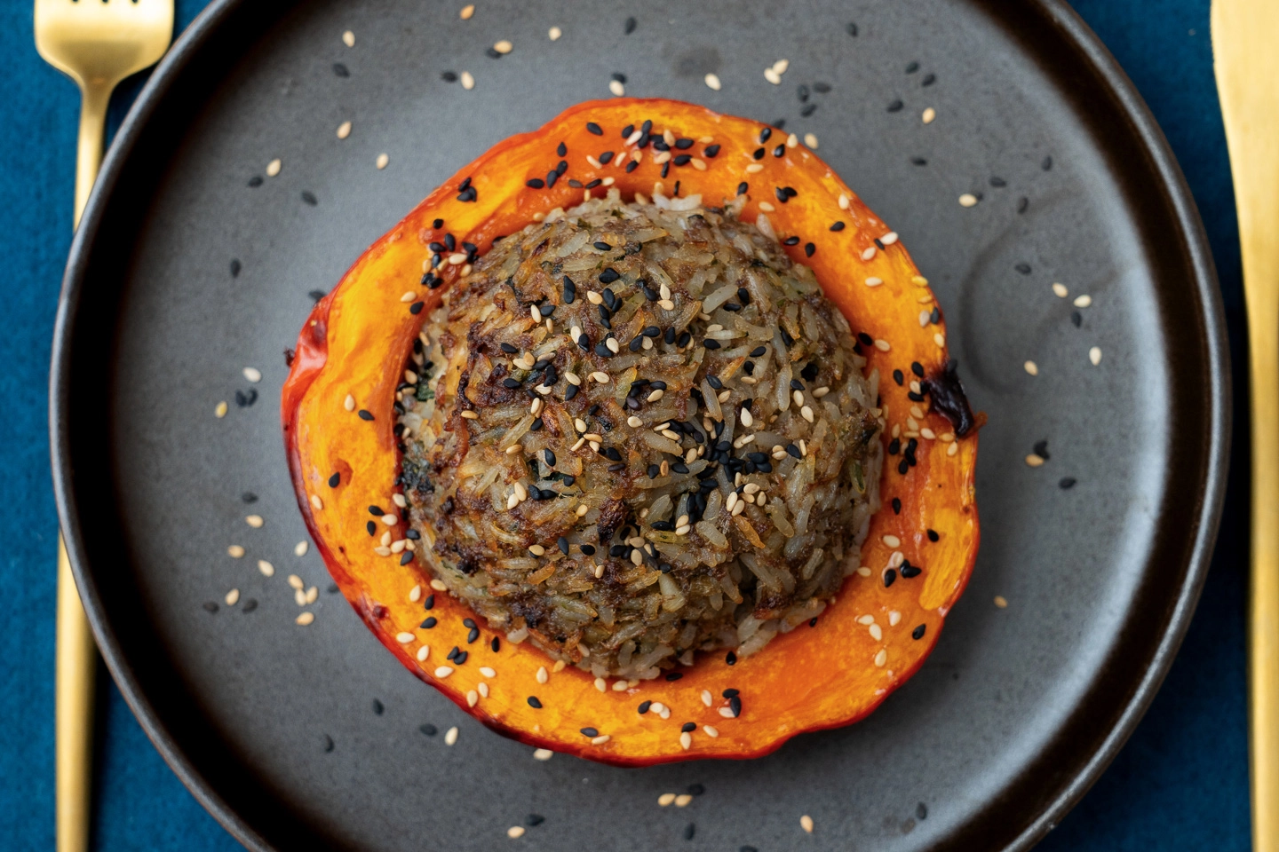 - Mossátok meg alaposan a hokkaido tököket, vágjátok félbe, majd kaparjátok ki a magházát. Töltsétek meg a darált húsos rizzsel, majd tegyétek sütőpapírral bélelt tepsiben az előmelegített sütőbe. 40-45 perc alatt süssétek készre.
