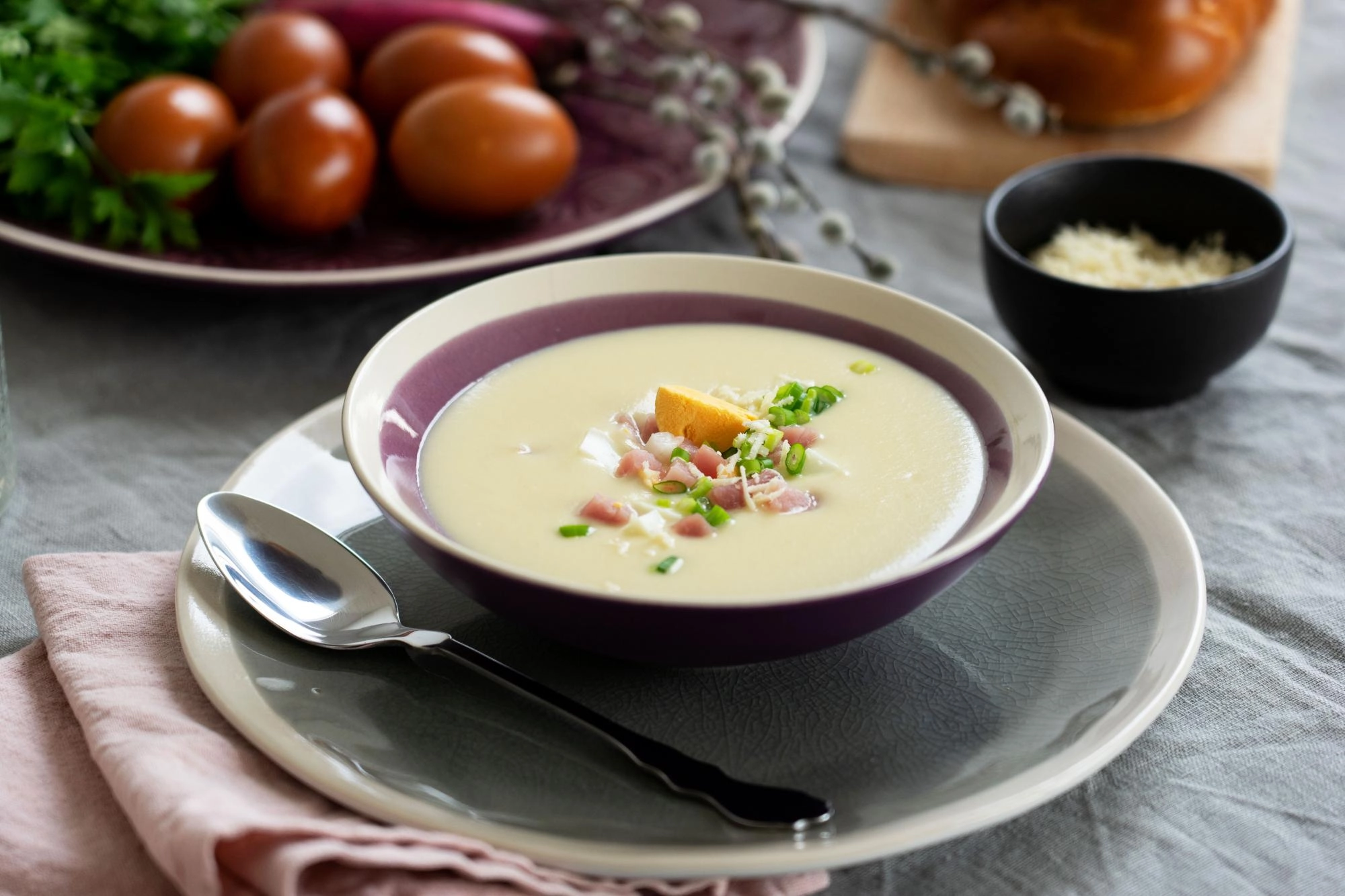 A húsvét legfontosabb alapanyagait új, izgalmas formában is tálalhatjuk, például krémlevesként.